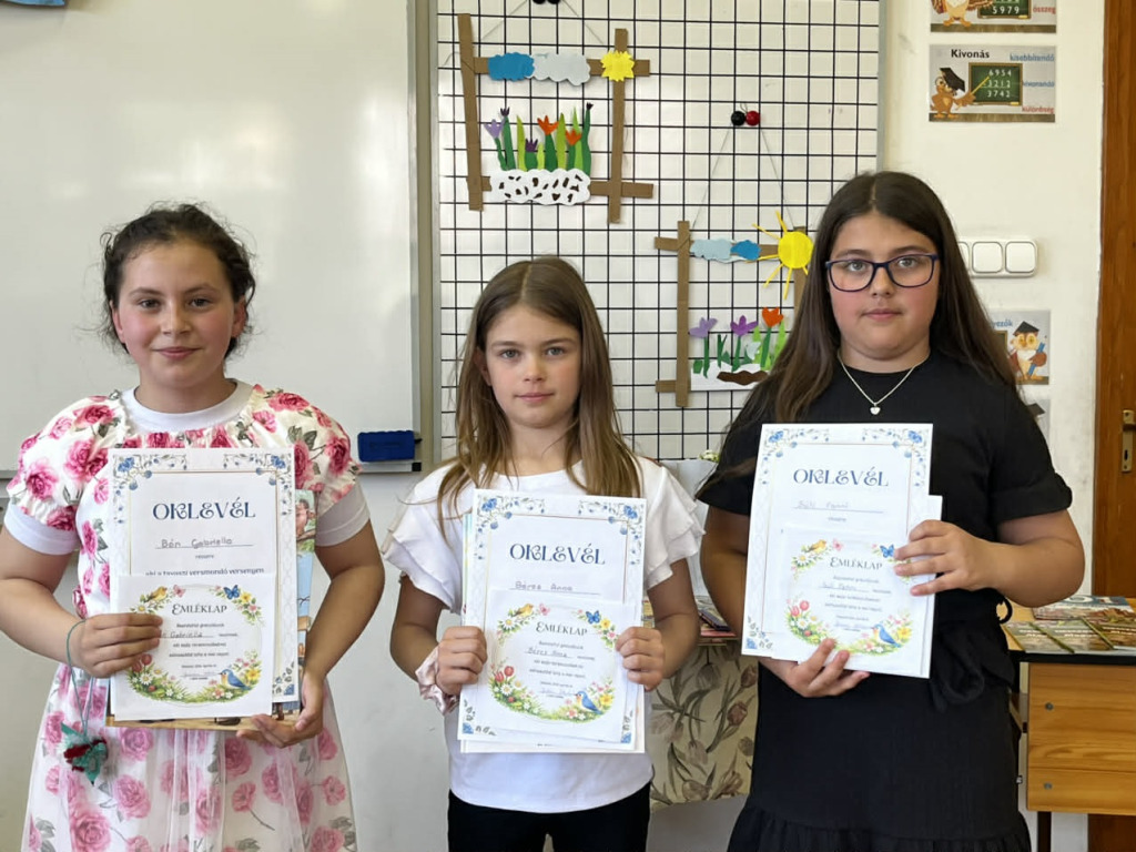 Köszönjük a zsűri munkáját és jótanácsait a további versenyekhez, valamint Kálmánné Tóth Edit és Papp Orsolya Ágnes tanító néniknek a meseszép okleveleket és emléklapokat!